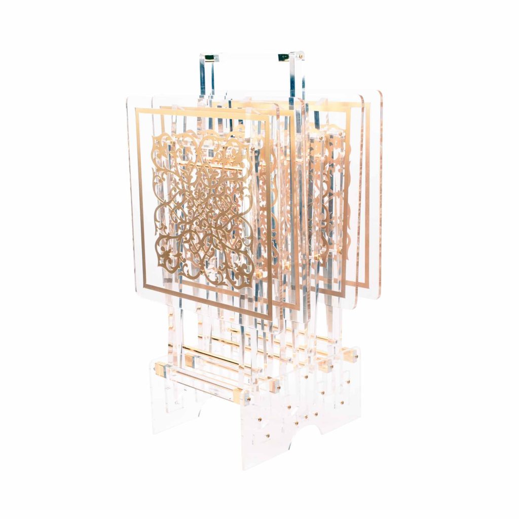 طقم طاولات مربع أكرليك فراشات لون ذهبي 4 قطع مع ستاند