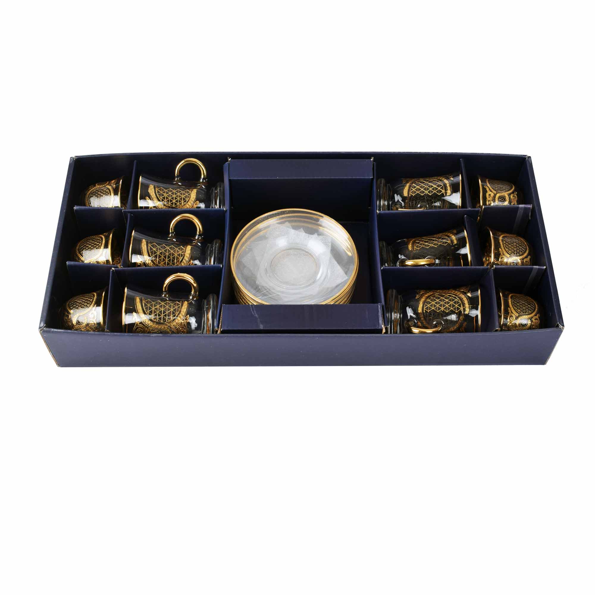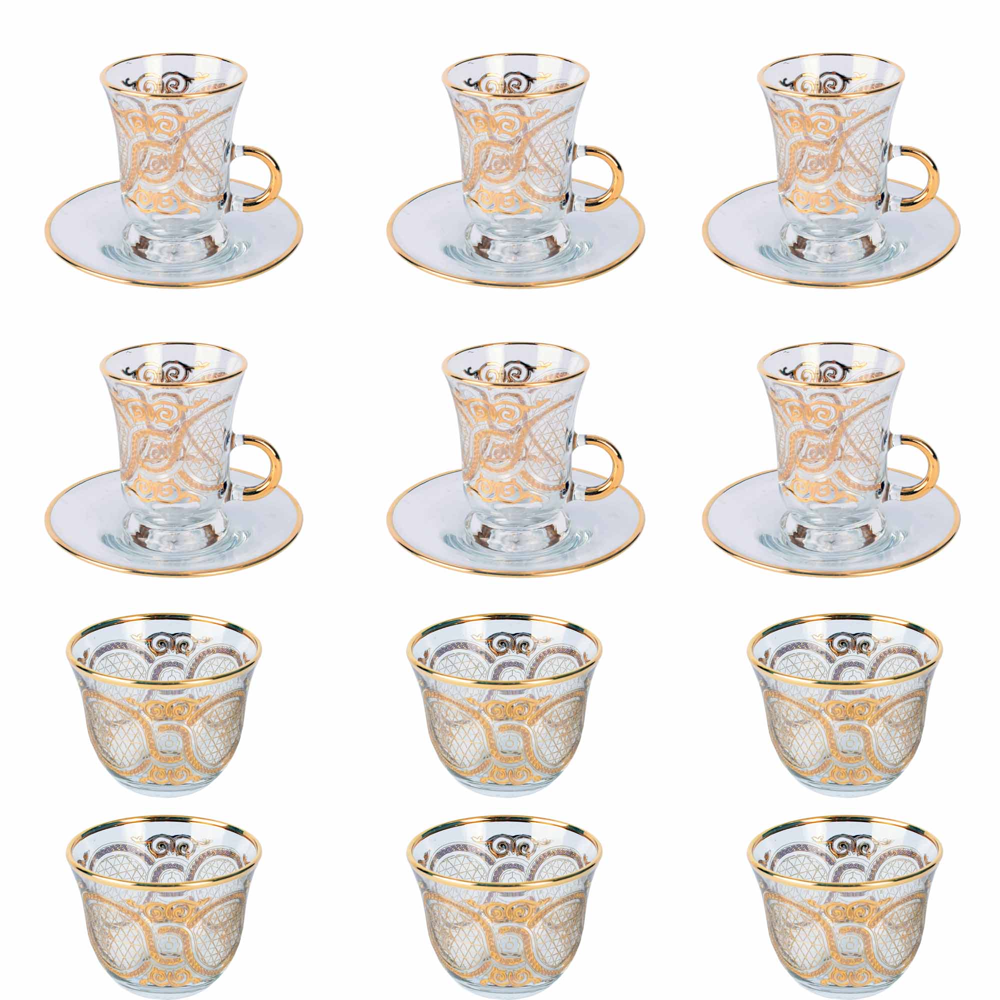 طقم شاي وقهوة عربي 18 قطعة لون ذهبي