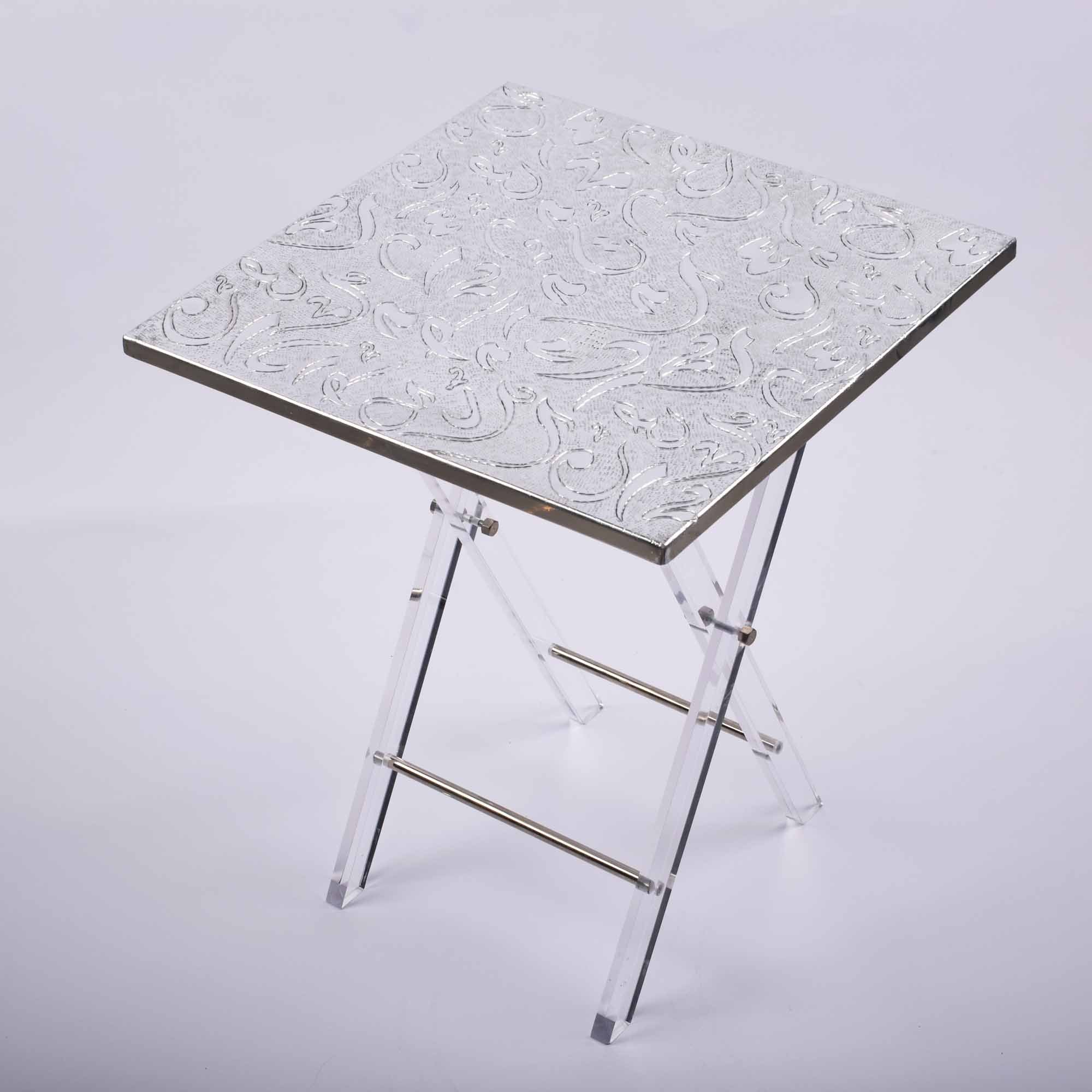 طقم طاولات المنيوم مربع 4 قطع حروف فضي مع ستاند أكرليك